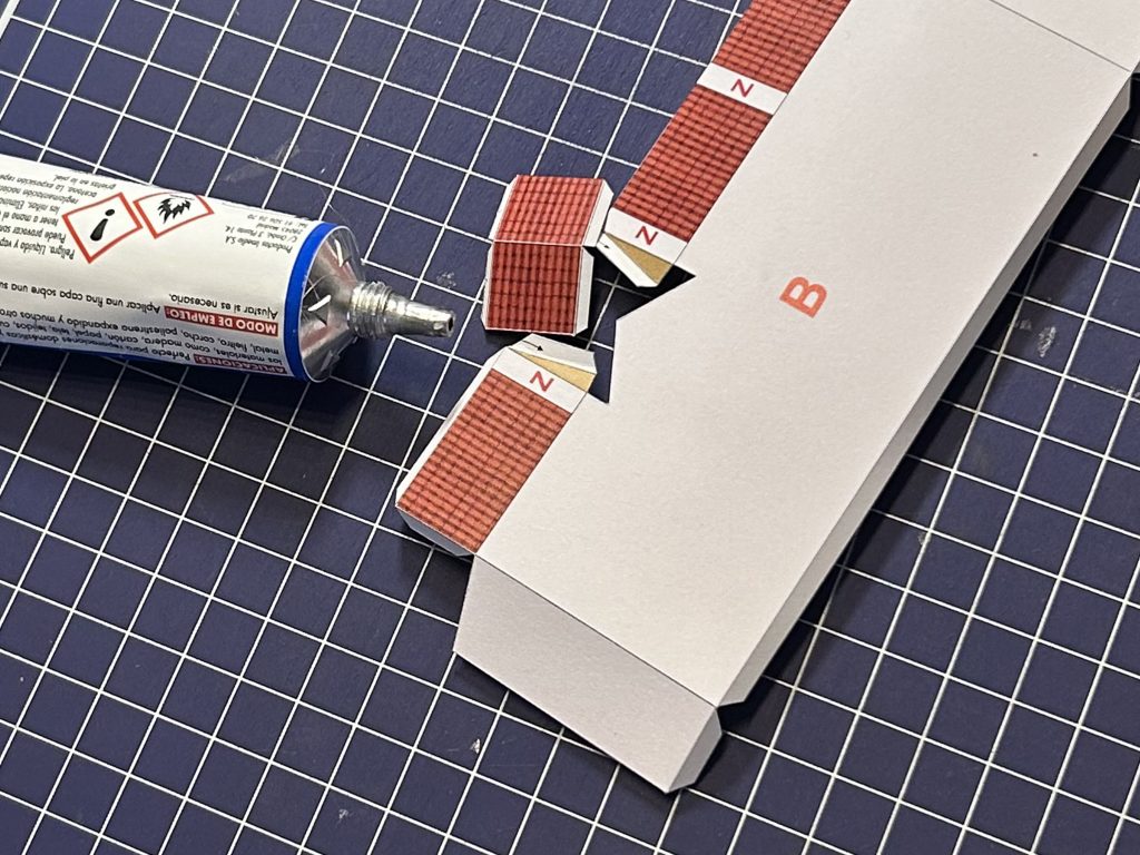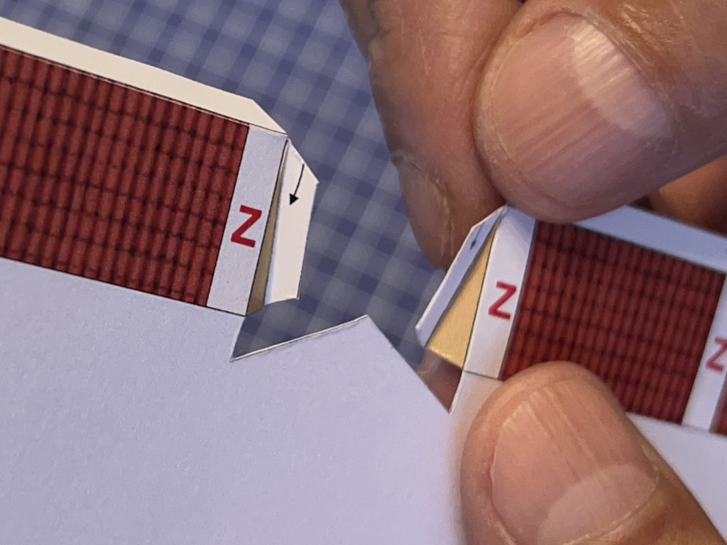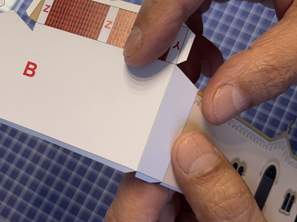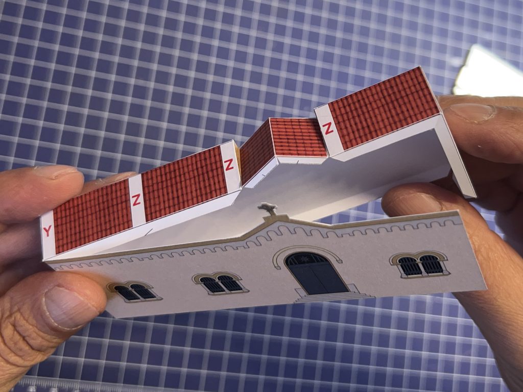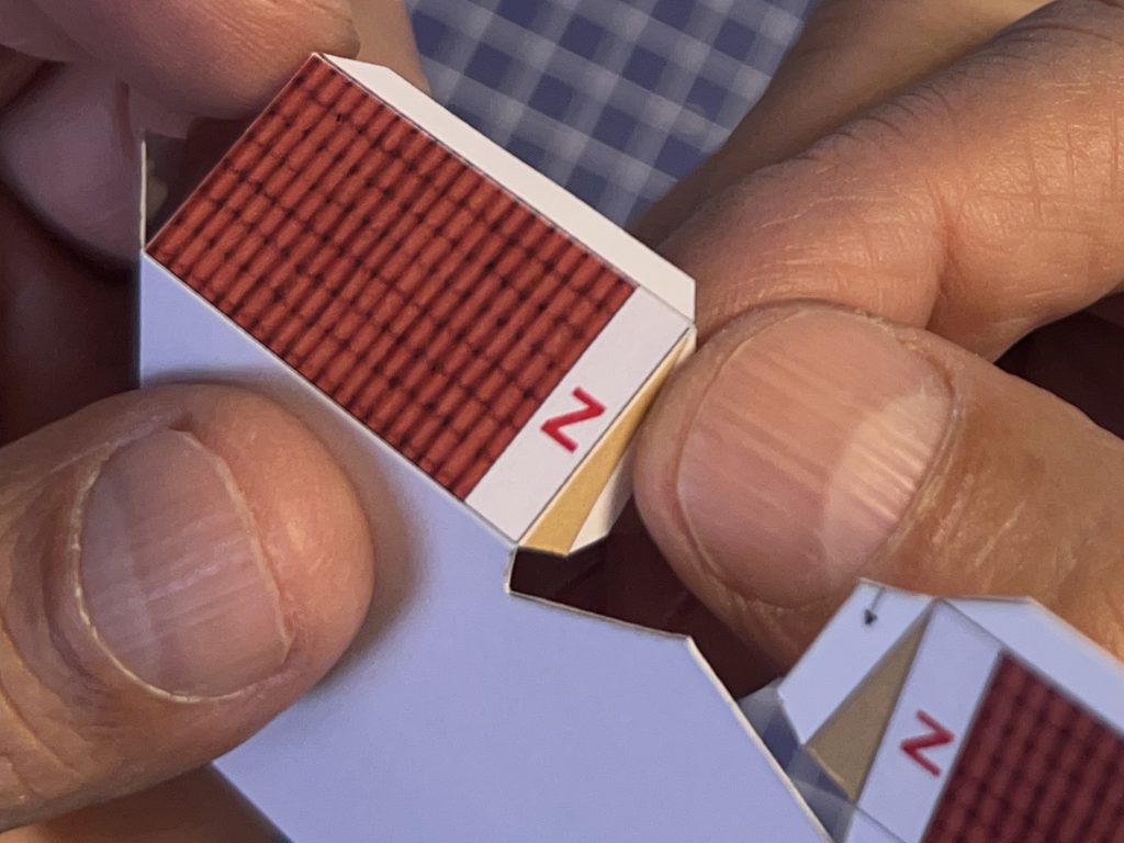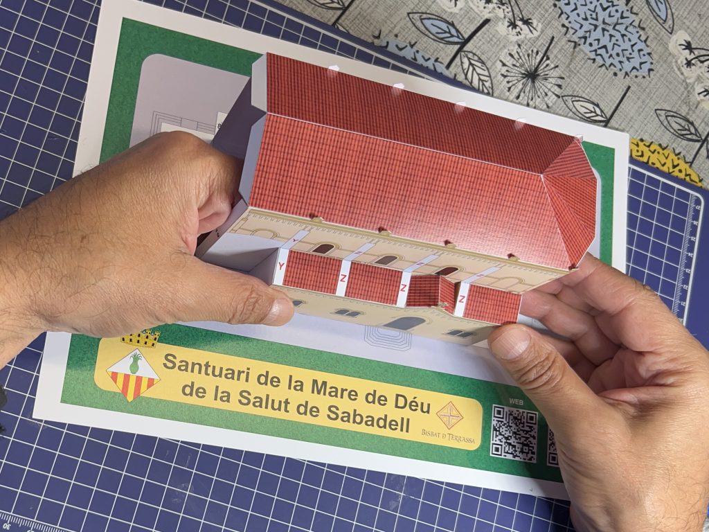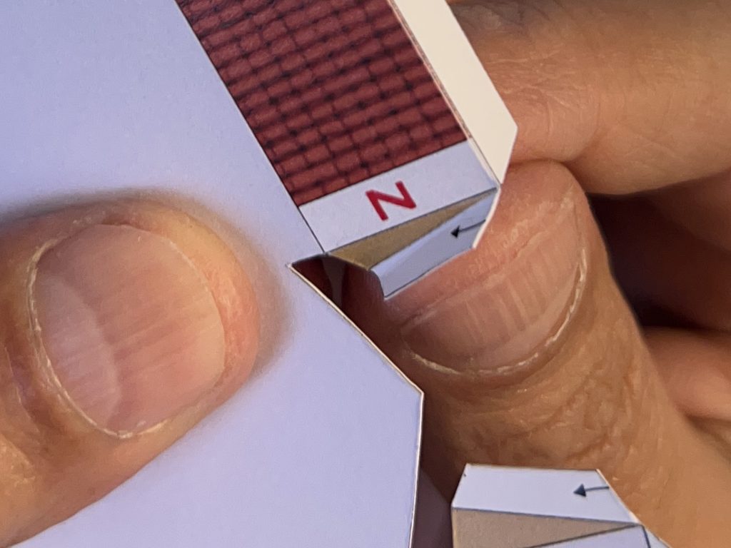 Atenció: aquest plec és al contrari dels altres, per enganxar-hi la teulada petita que hem preparat.