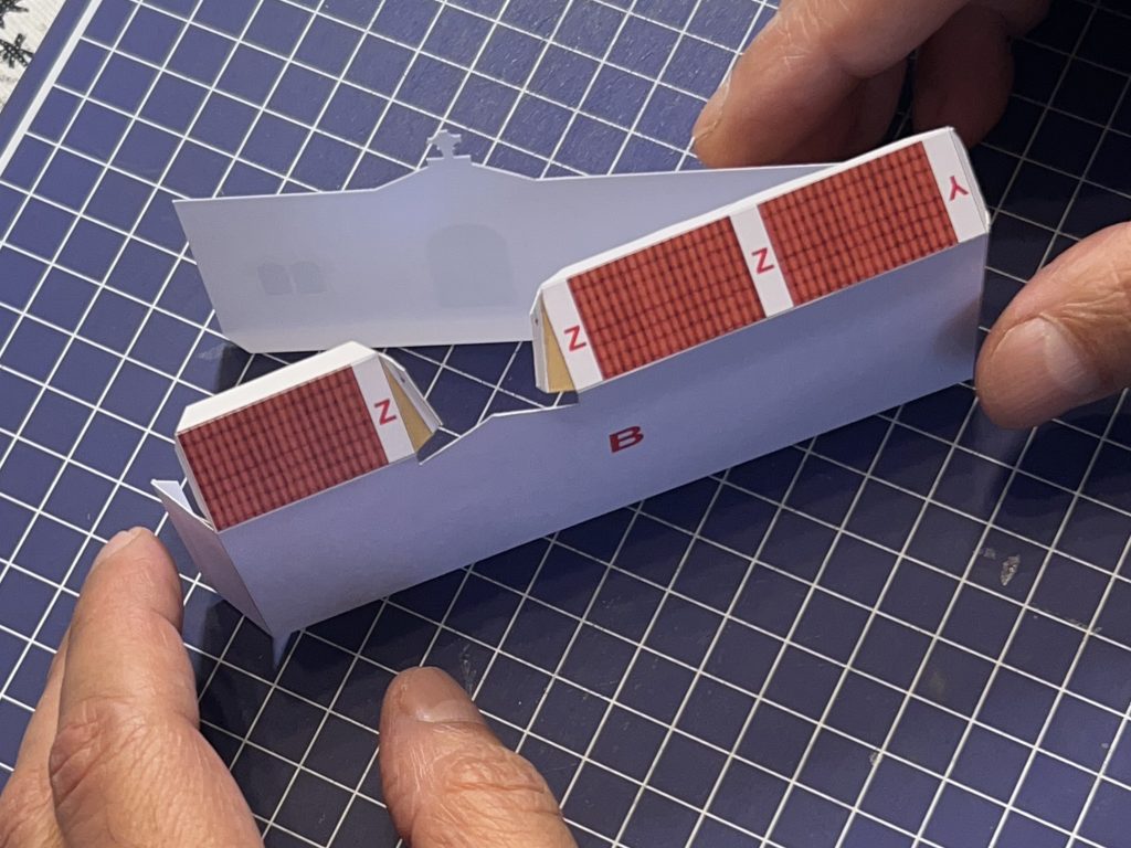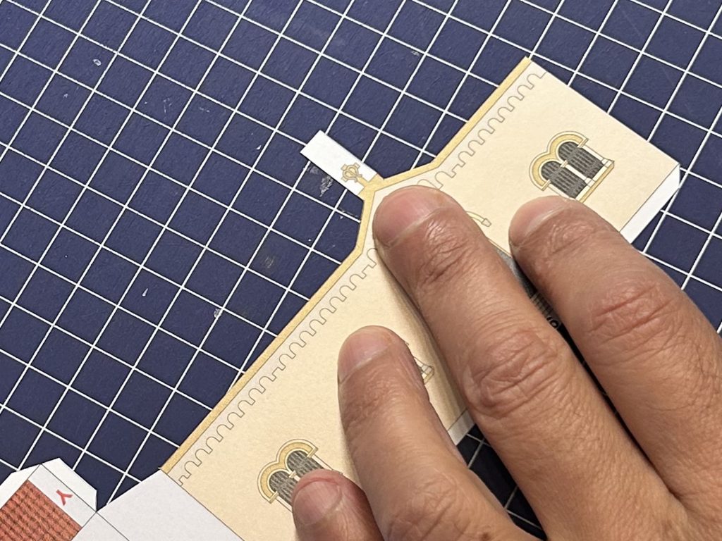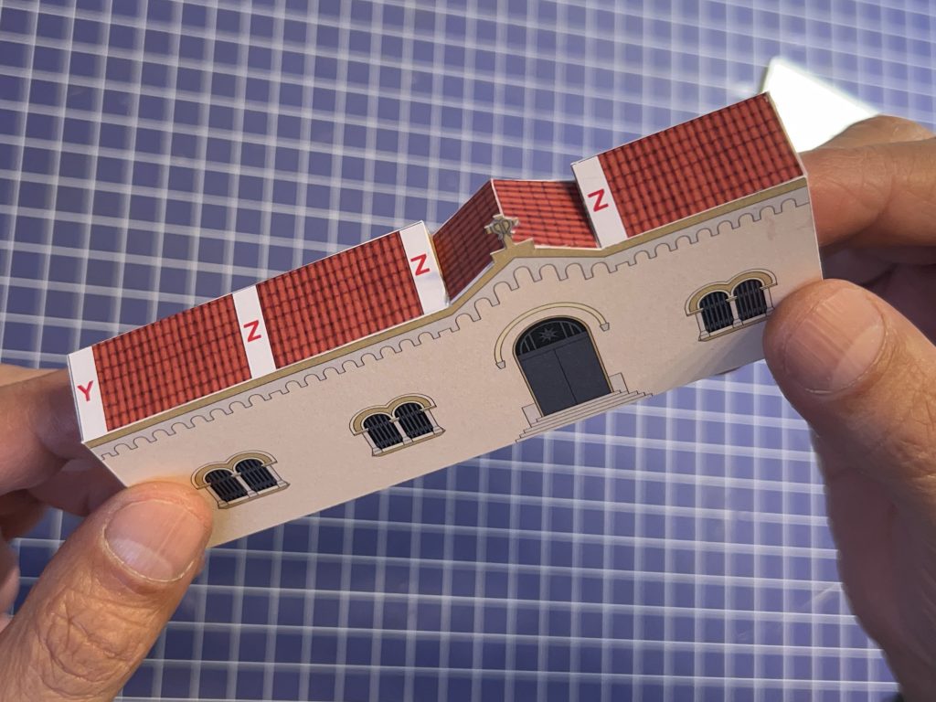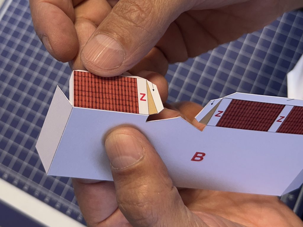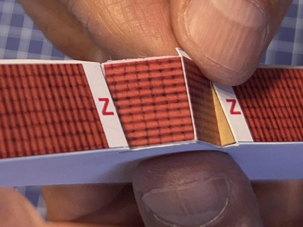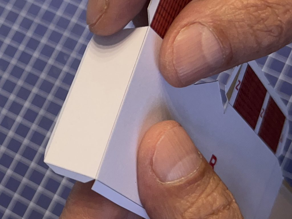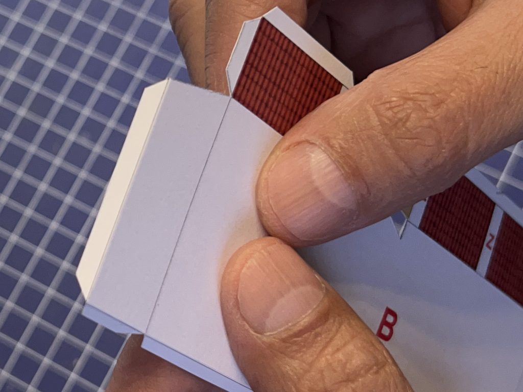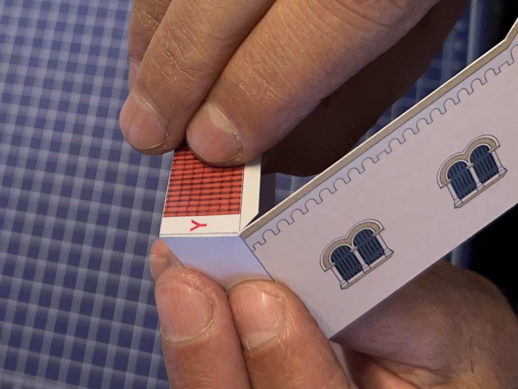 Atenció: aquest plec és al contrari dels altres, per enganxar-hi la teulada petita que hem preparat.