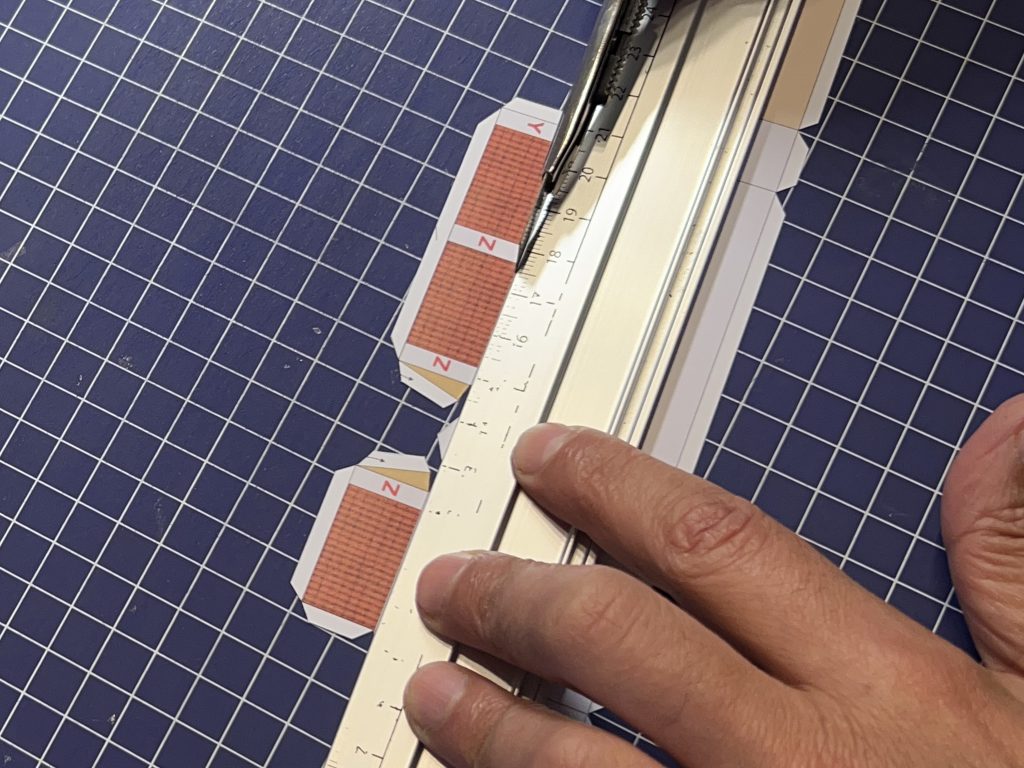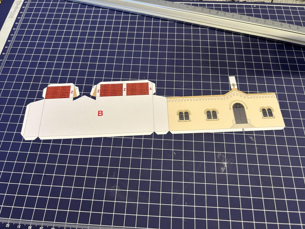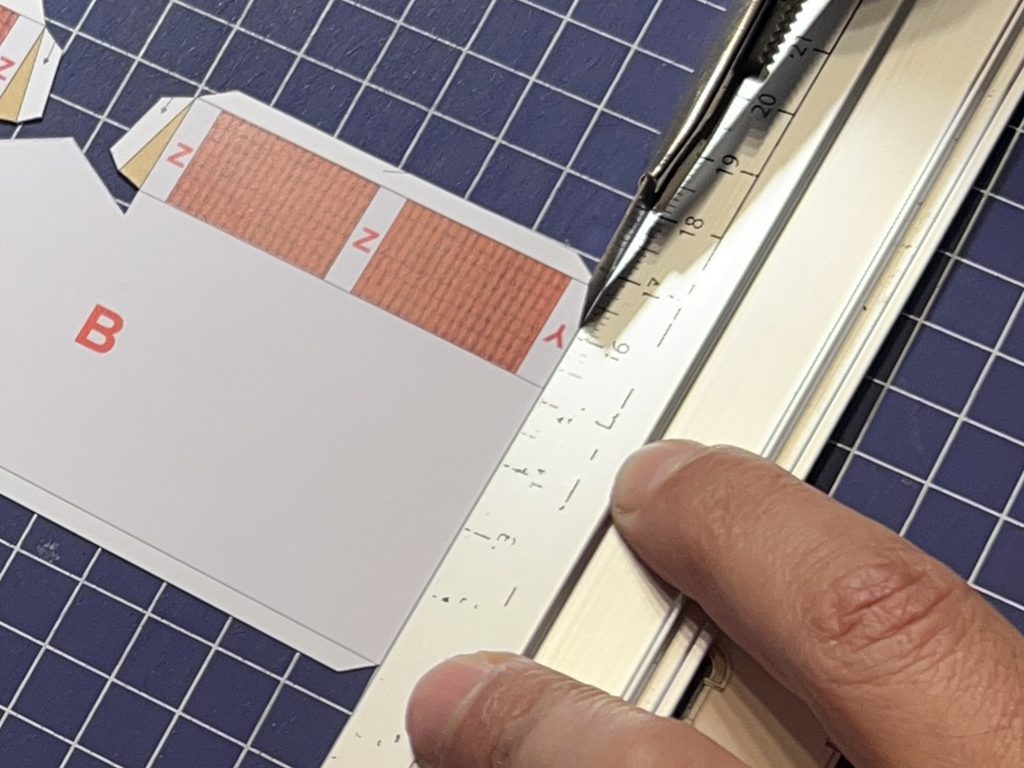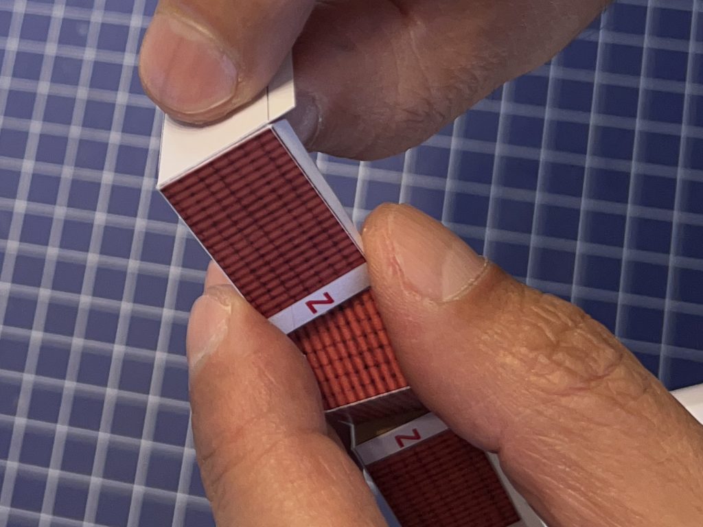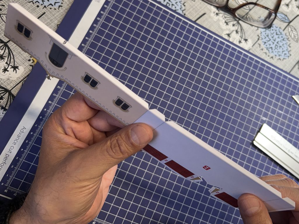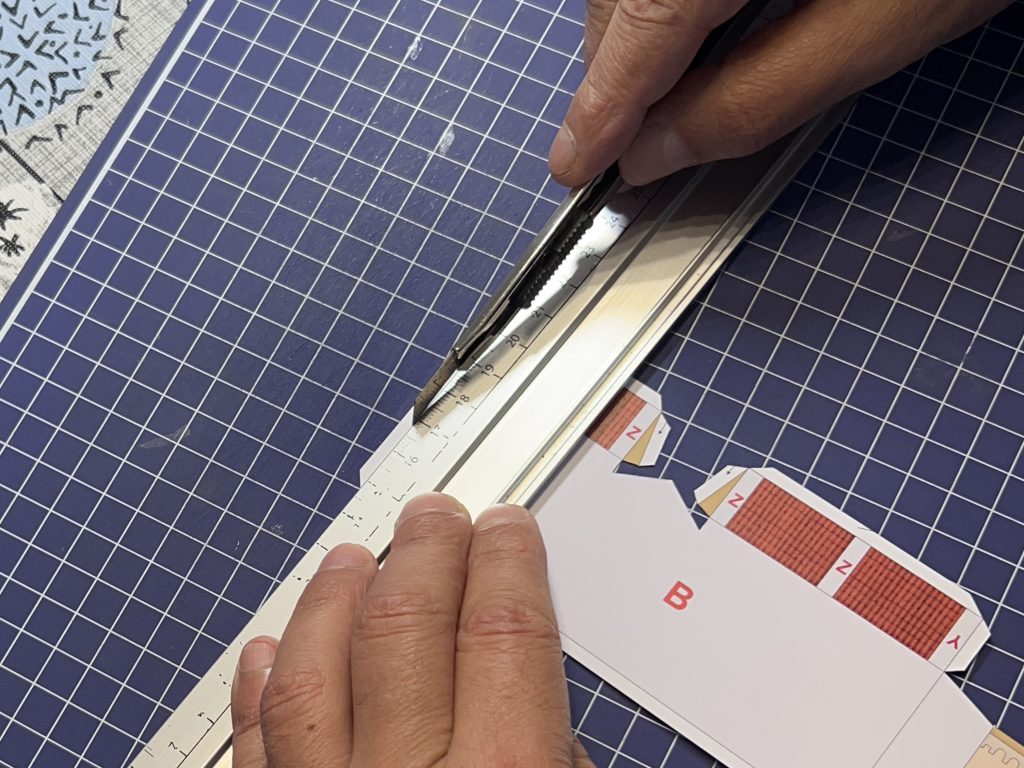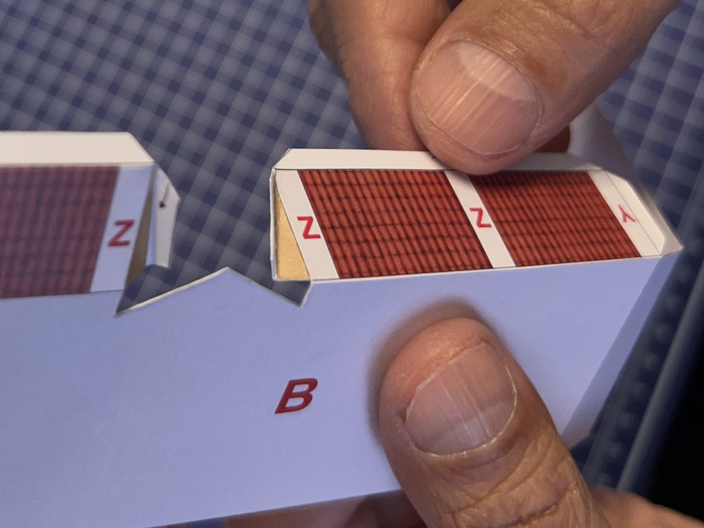 Atenció: aquest plec és al contrari dels altres, per enganxar-hi la teulada petita que hem preparat.