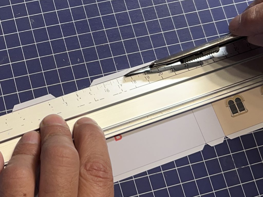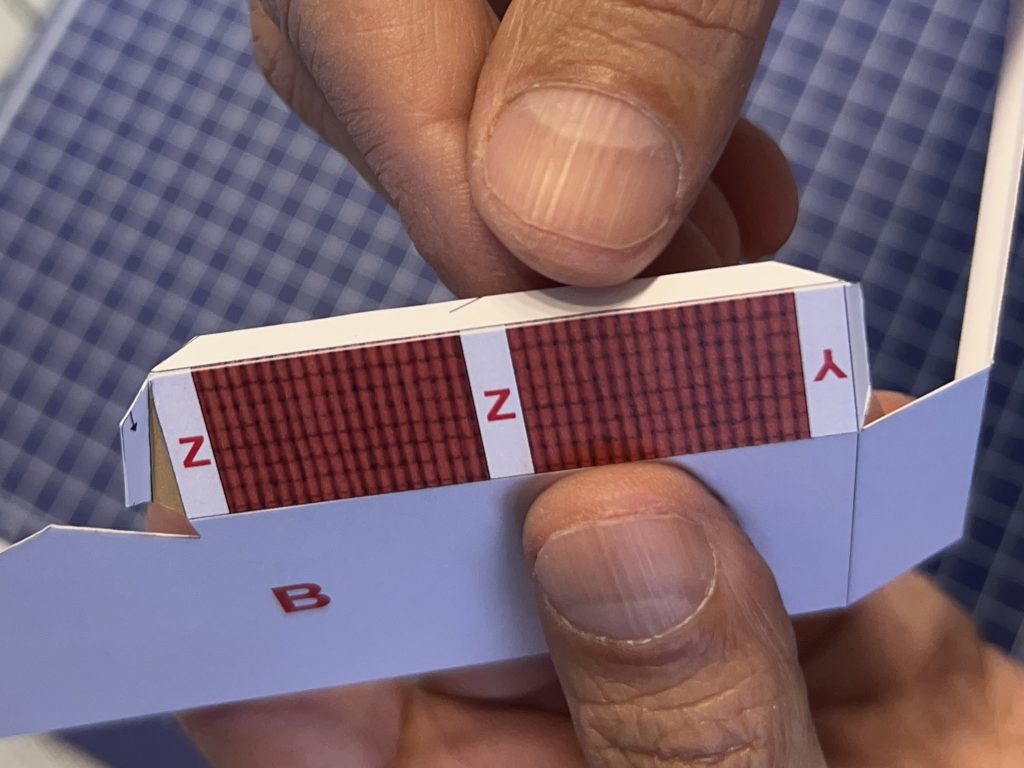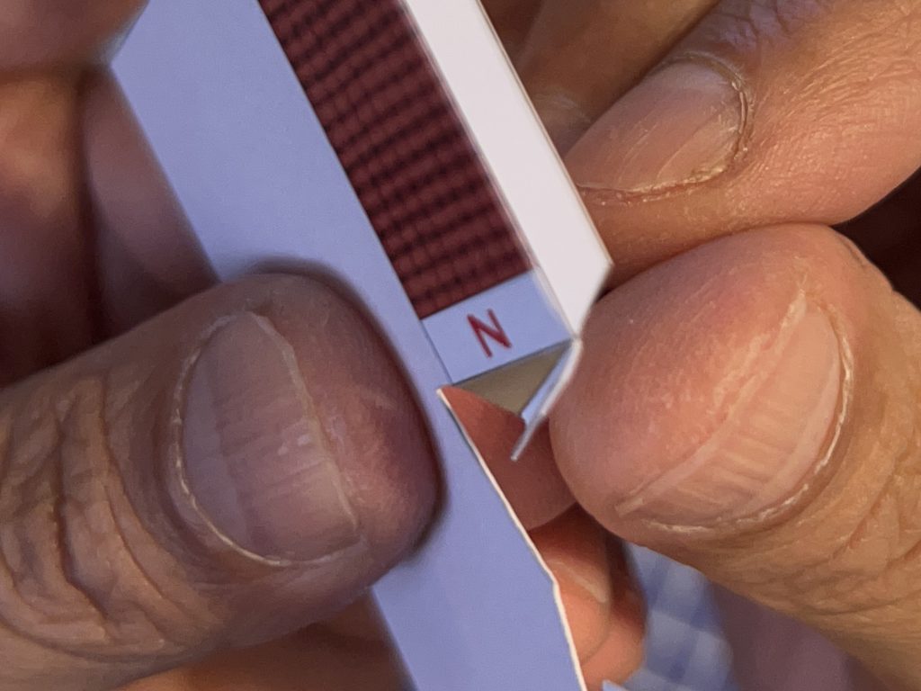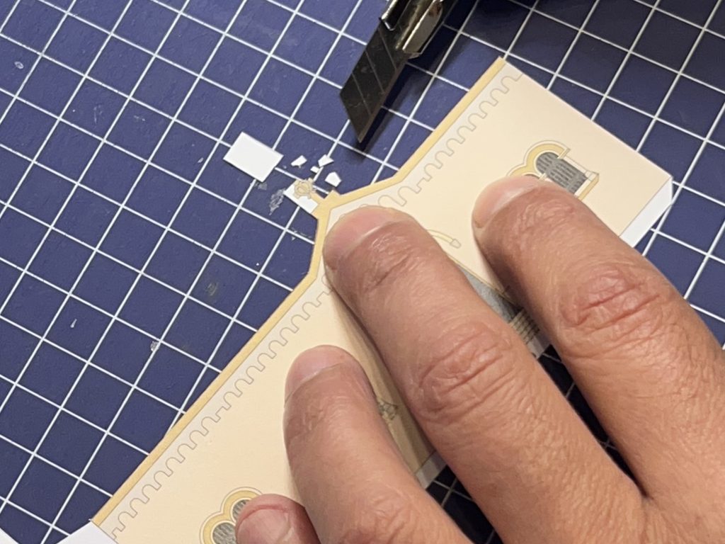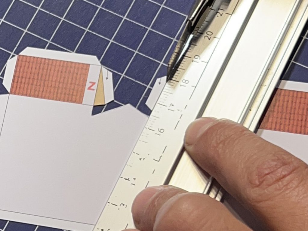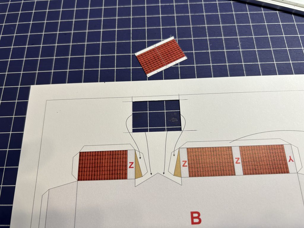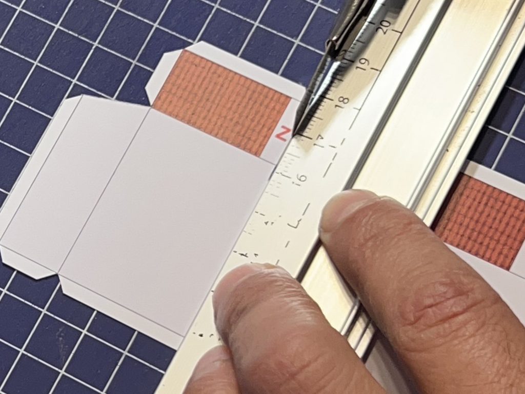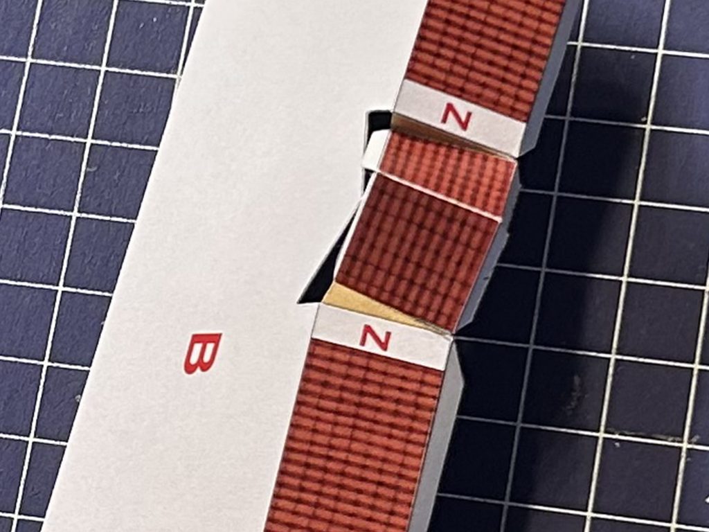 Atenció: aquest plec és al contrari dels altres, per enganxar-hi la teulada petita que hem preparat.