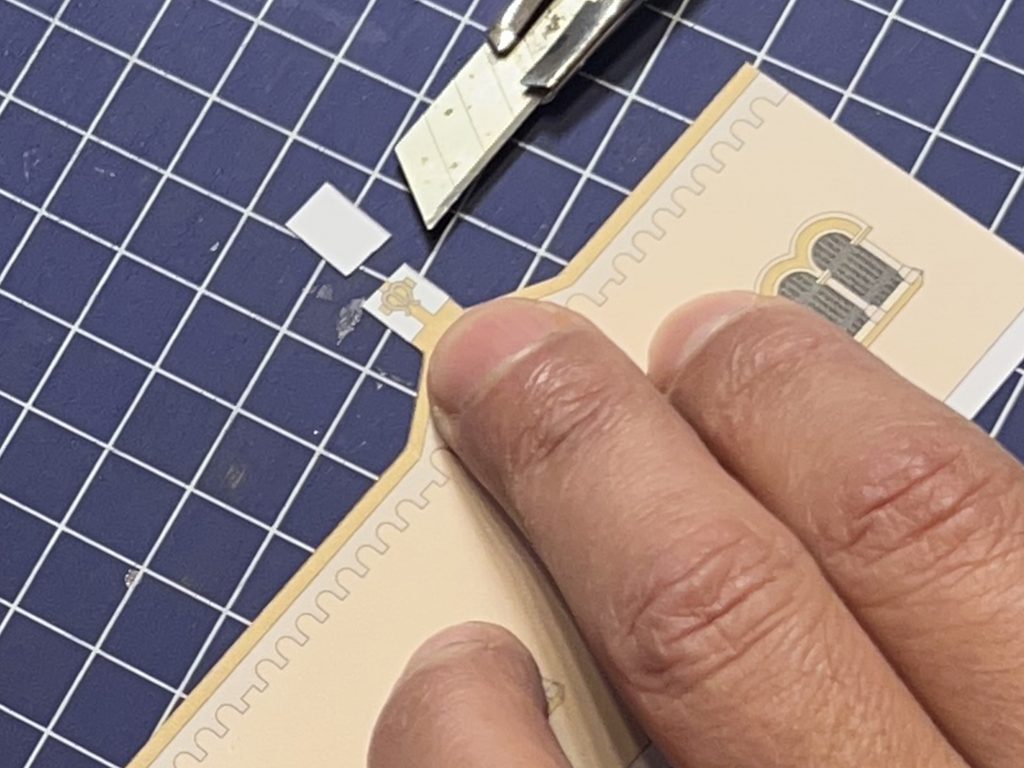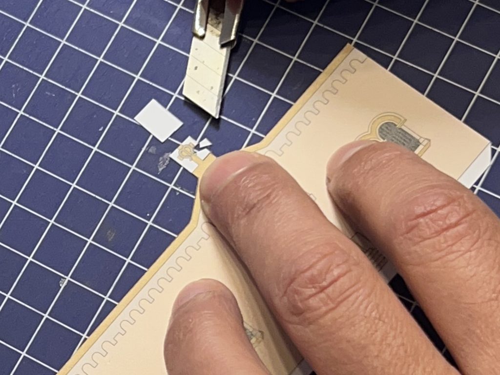Ara, situarem la peça sobre la planta, fixant-nos a on l’enganxarem.