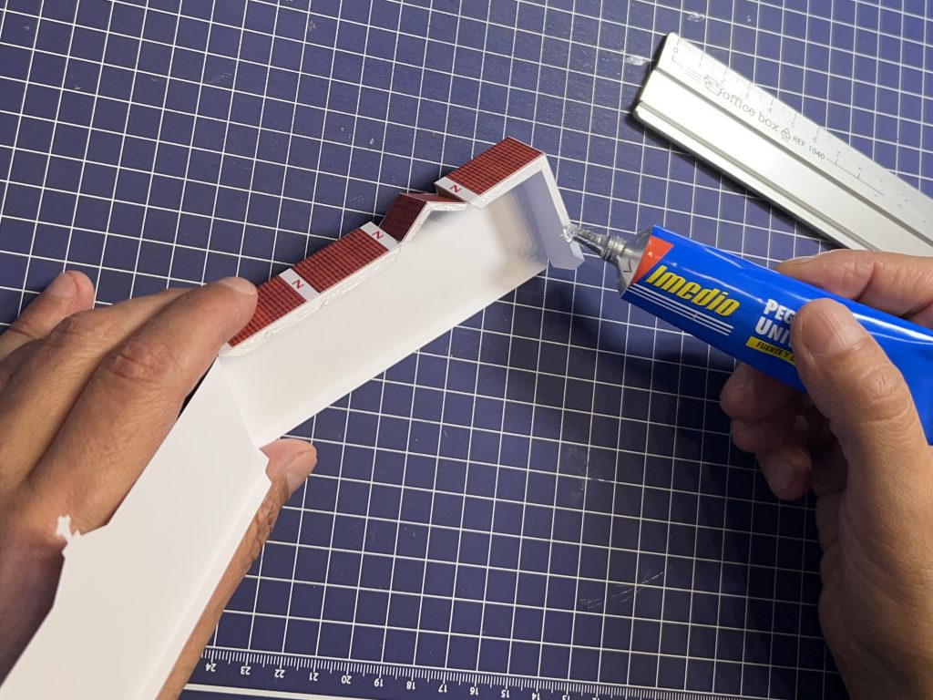 Enganxem amb molta cura la teulada petita en l’espai que hem preparat.