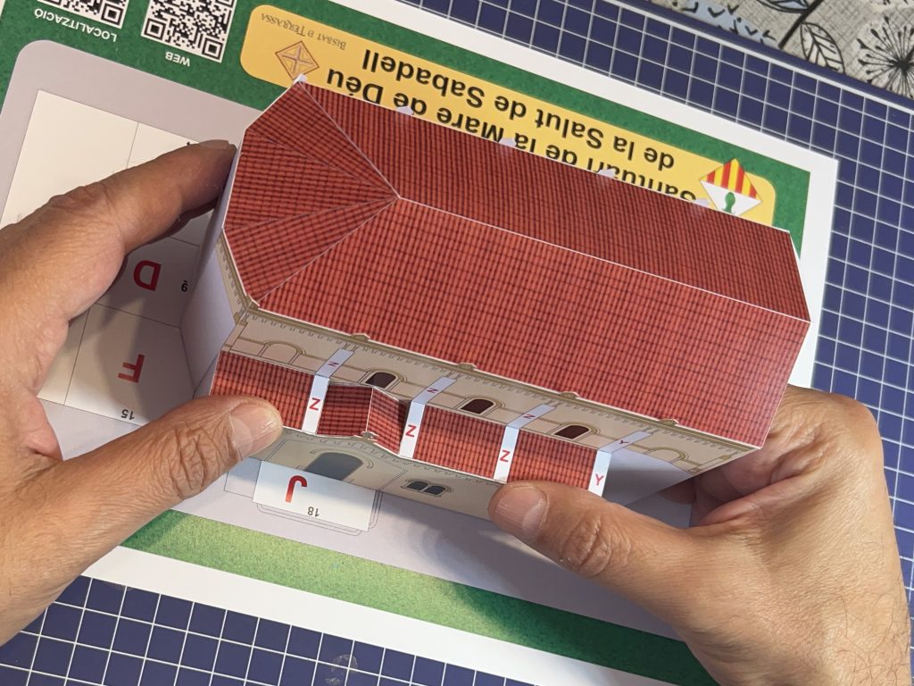 Posem pegament, i ens ajudem de l’espai interior de la Nau Central, posant-hi la mà per dintre, per tal d’enganxar bé la peça al seu lloc.