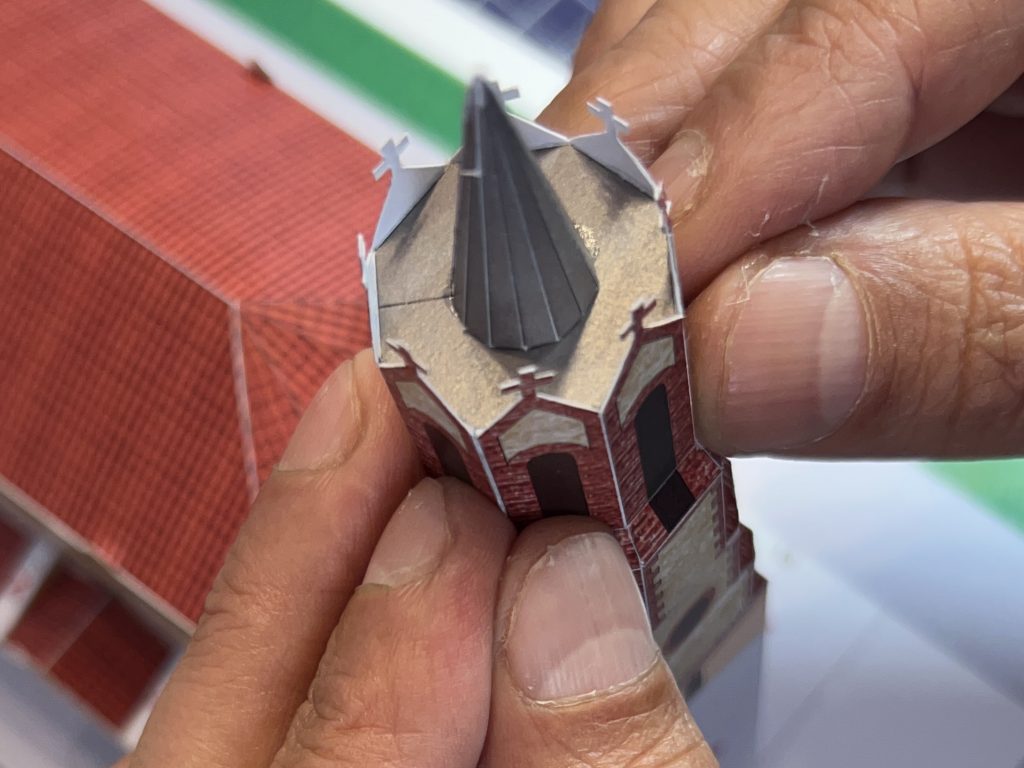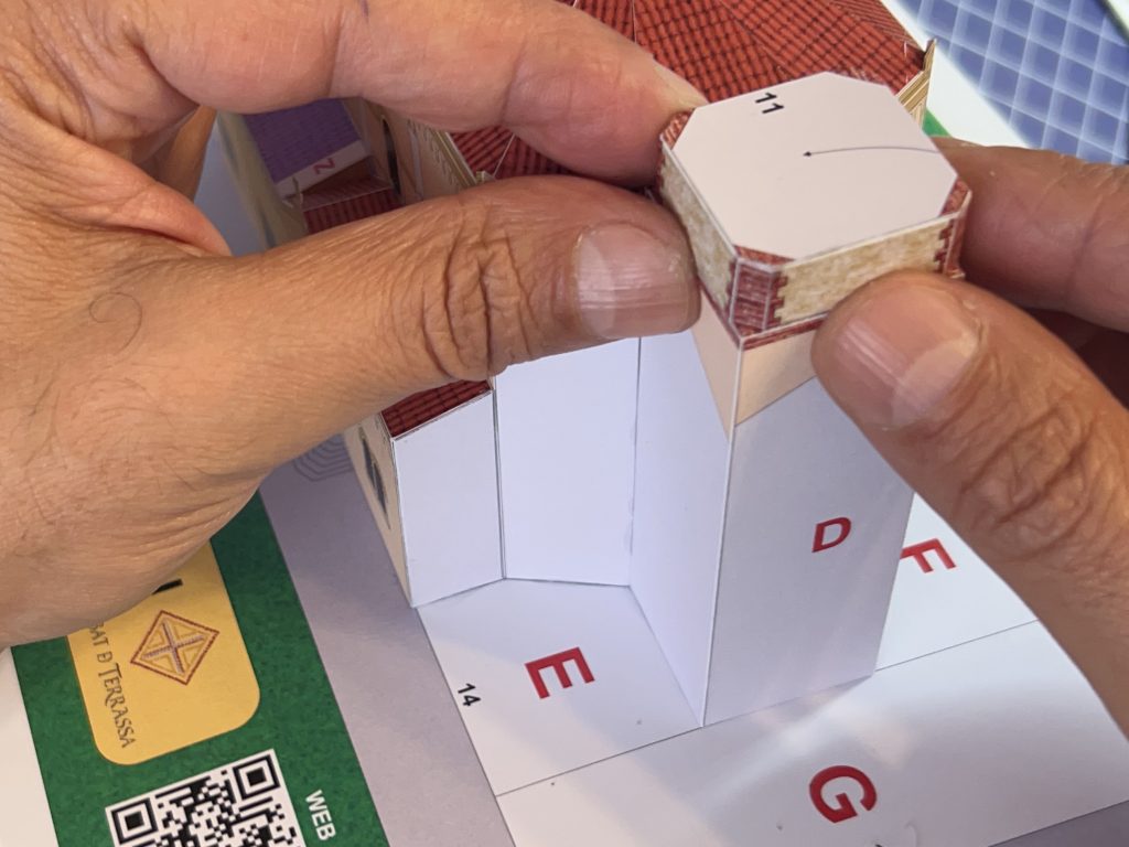 Situem la darrera part del campanar al lloc on l’enganxarem.