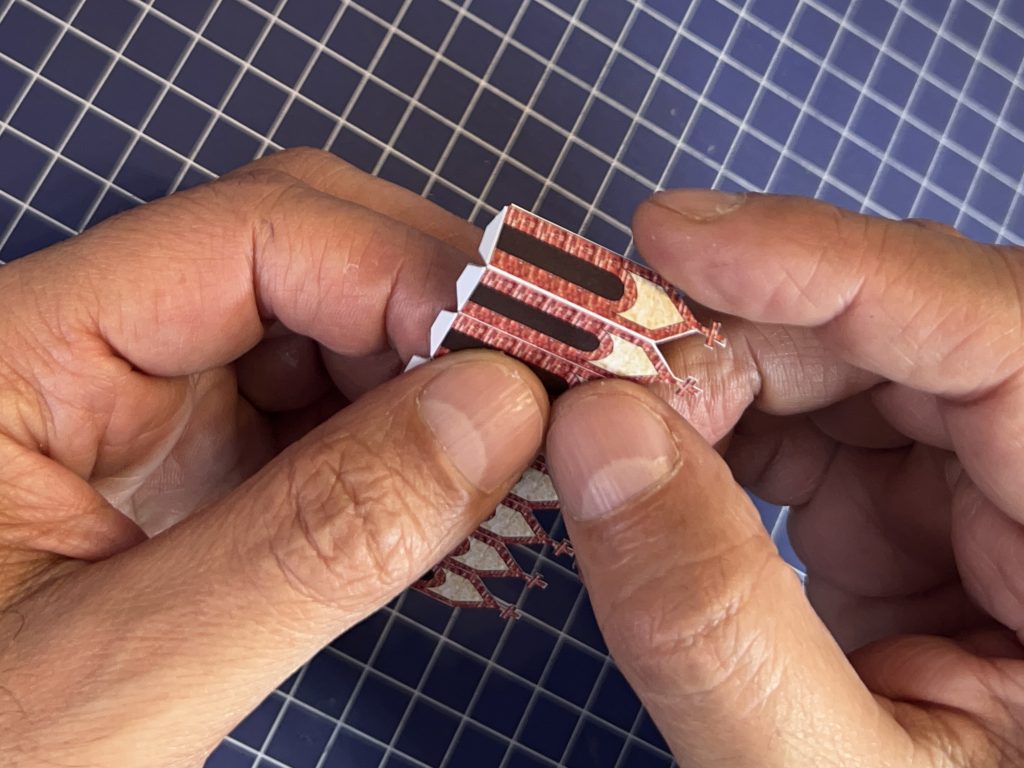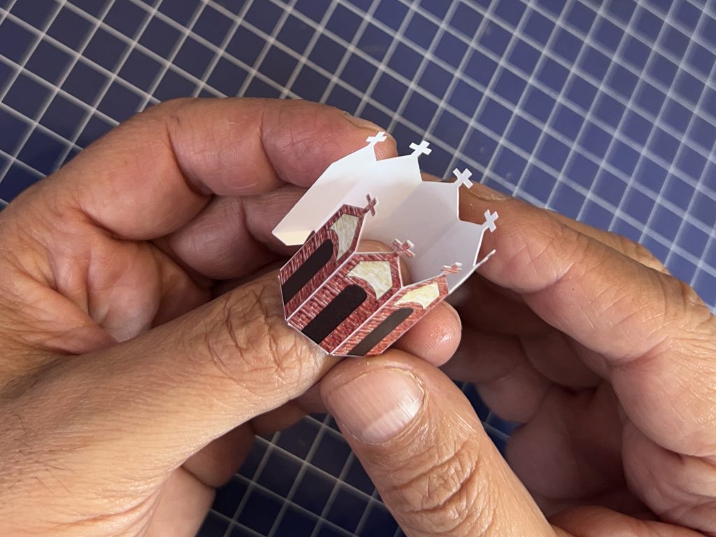 Enganxem amb molta cura un per un dels costats, que coincideixin bé d’aquesta manera.
