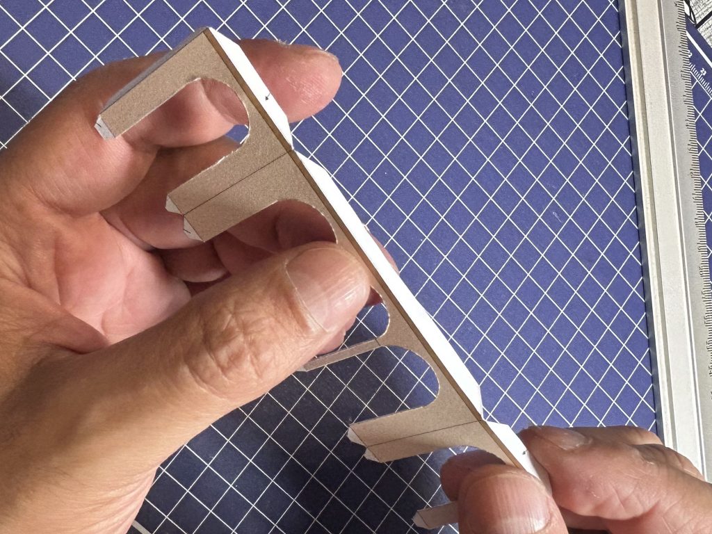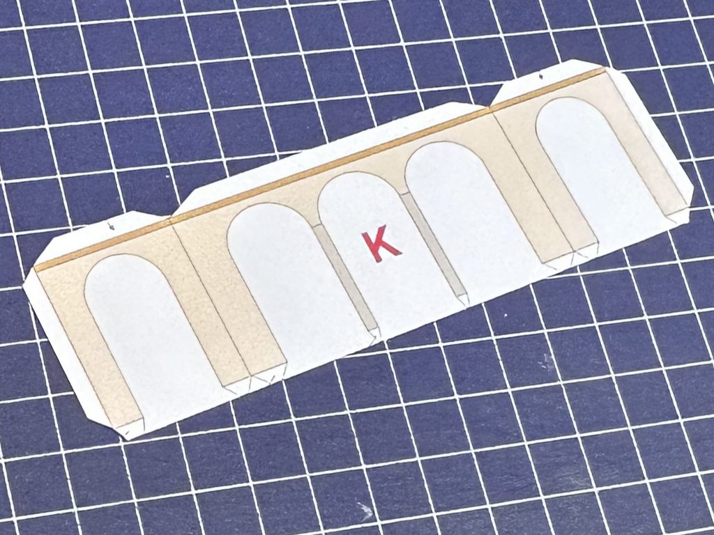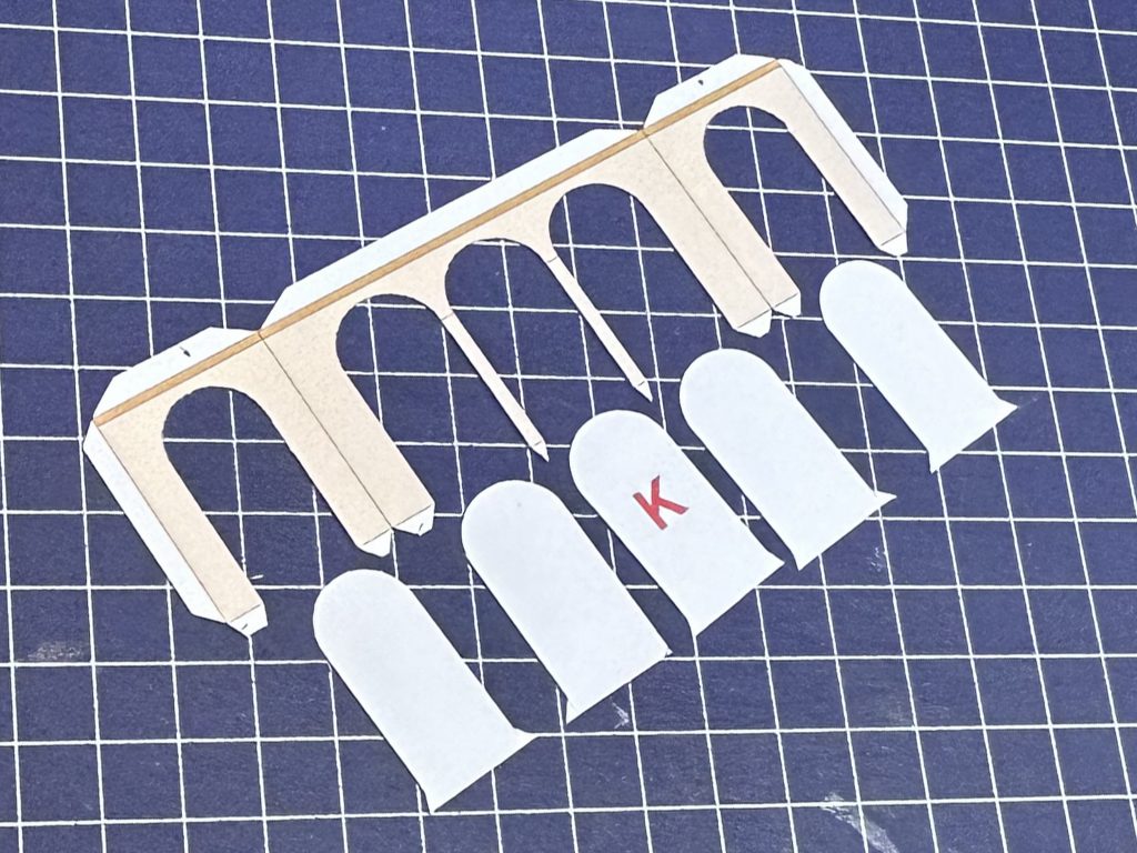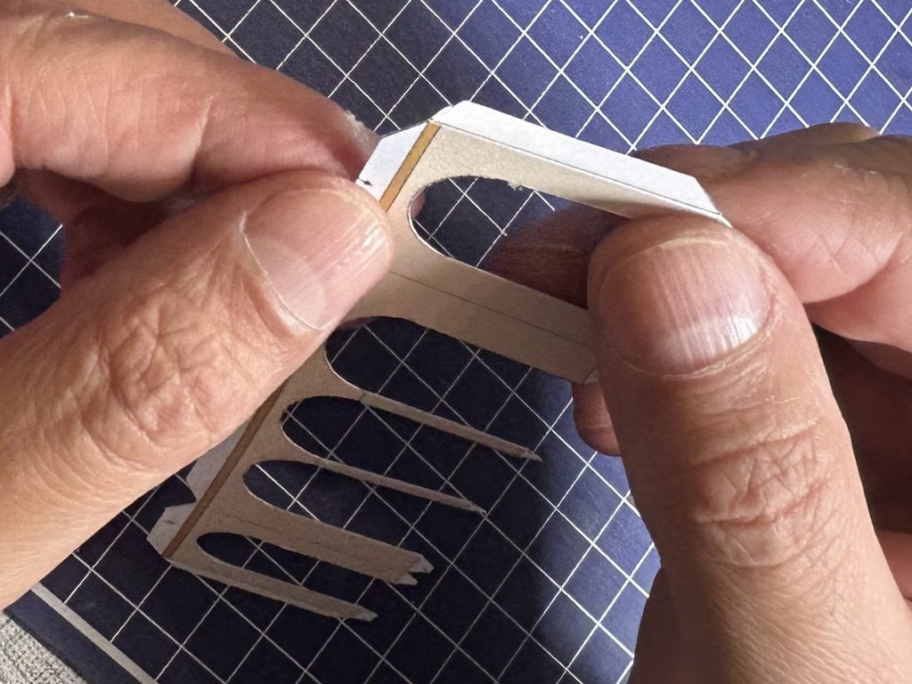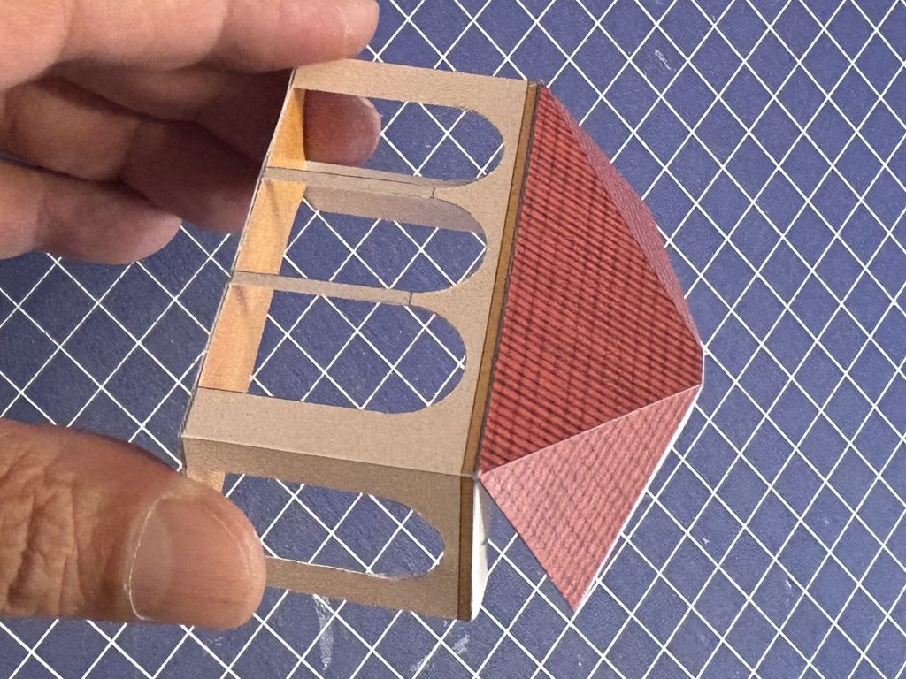 Tallem el porxo, amb molta cura, de la mateixa manera que hem tallat el Porxo Lateral (J).