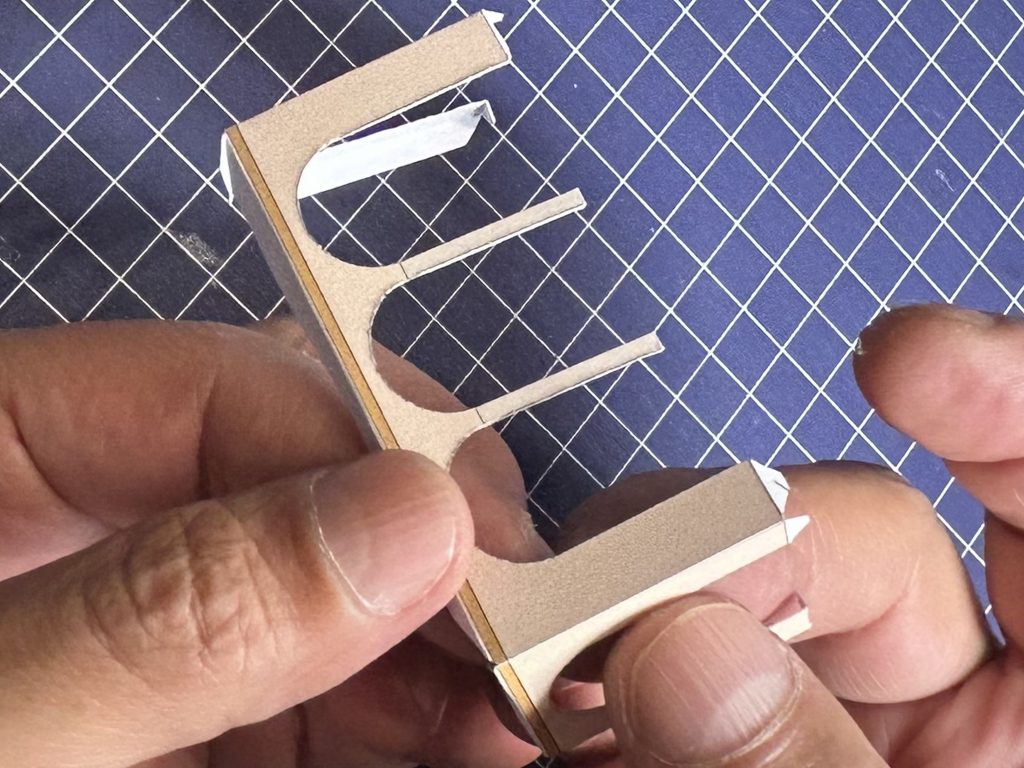Ara, situarem la peça sobre la planta, fixant-nos a on l’enganxarem.